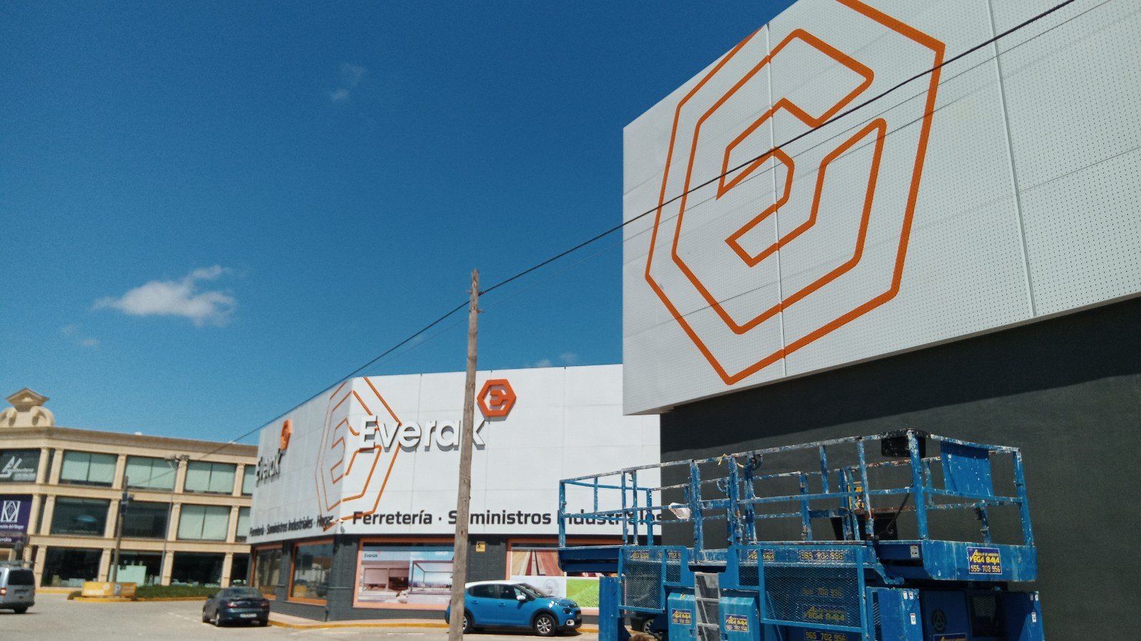 Rotulación con pintura acrílica de 2 componentes sobre fachada de chapa de hierro
